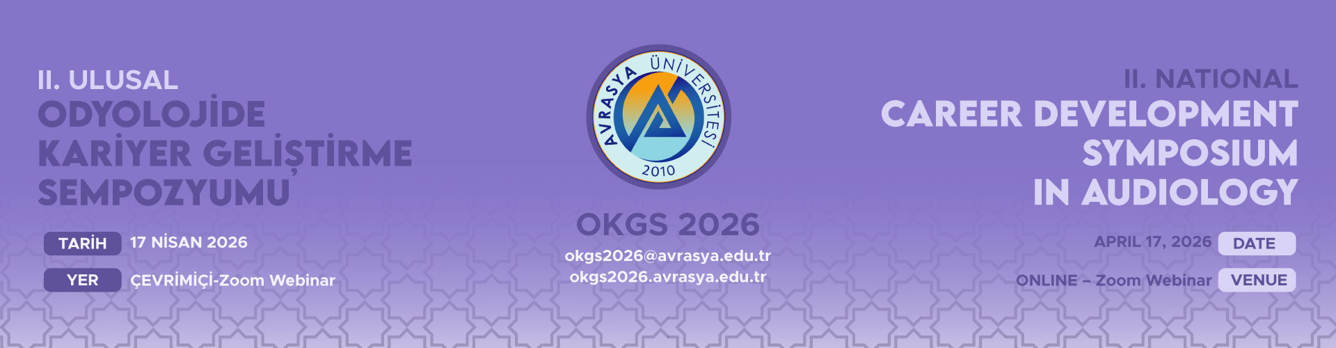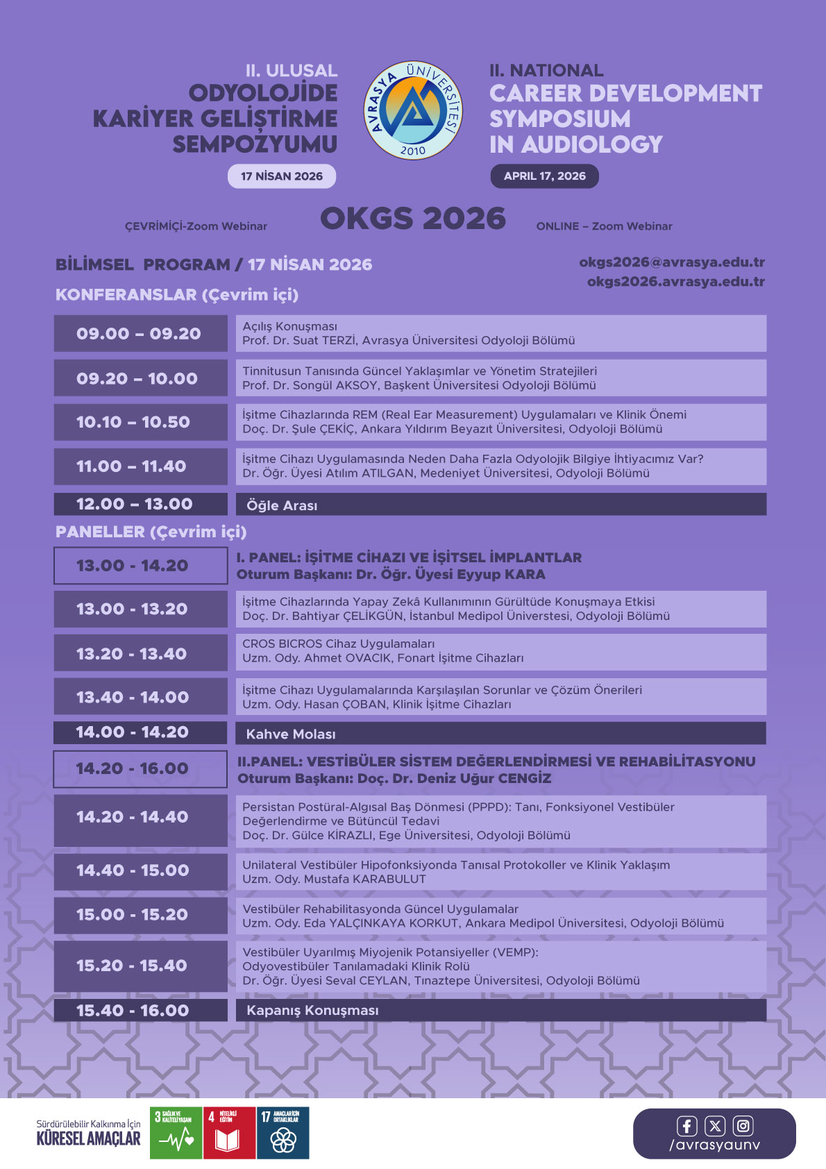 Sizleri sektörün önde gelen uzmanlarıyla tanışmaya, bilgi alışverişinde bulunmaya ve odyoloji alanında kariyer yapma yolunda ilerlemeye davet ediyoruz. Etkinlik hakkında daha fazla bilgi almak ve kaydolmak için okgs2026@avrasya.edu.tr adresine başvurabilirsiniz.